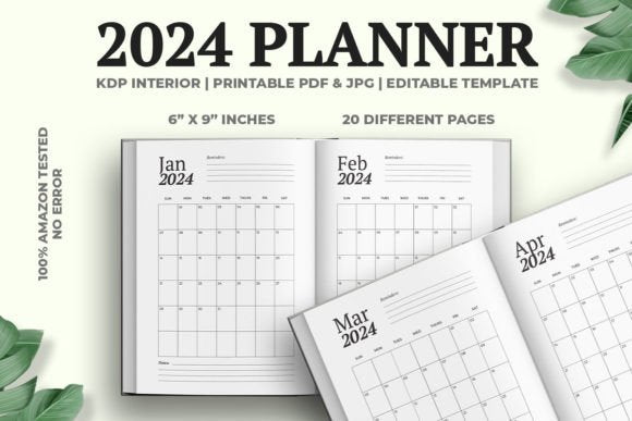 2024 Planner/KDP Interior with 20 Different Pages, 100% Tested on Amazon KDP. Perfect for growing your KDP book publishing business on Amazon. 100% vector editable & resizable PDF, ready for notebook, journal, diary and ready for printing.